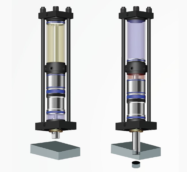 Hydropneumatic cylinders find use in a wide range of production applications, such as Part insertion and assembly, Material piercing, Clinching, Staking, Drawing, Marking, Cutting, Pressing, Folding, Riveting